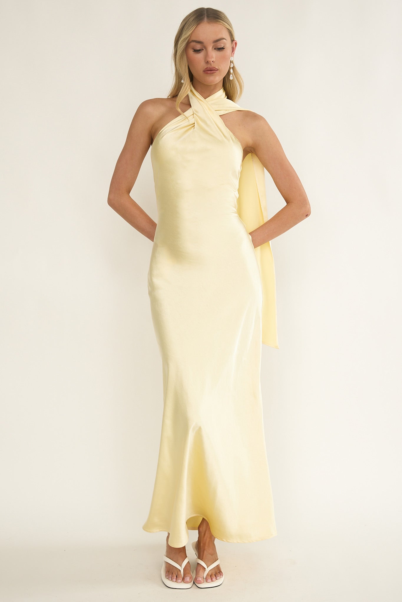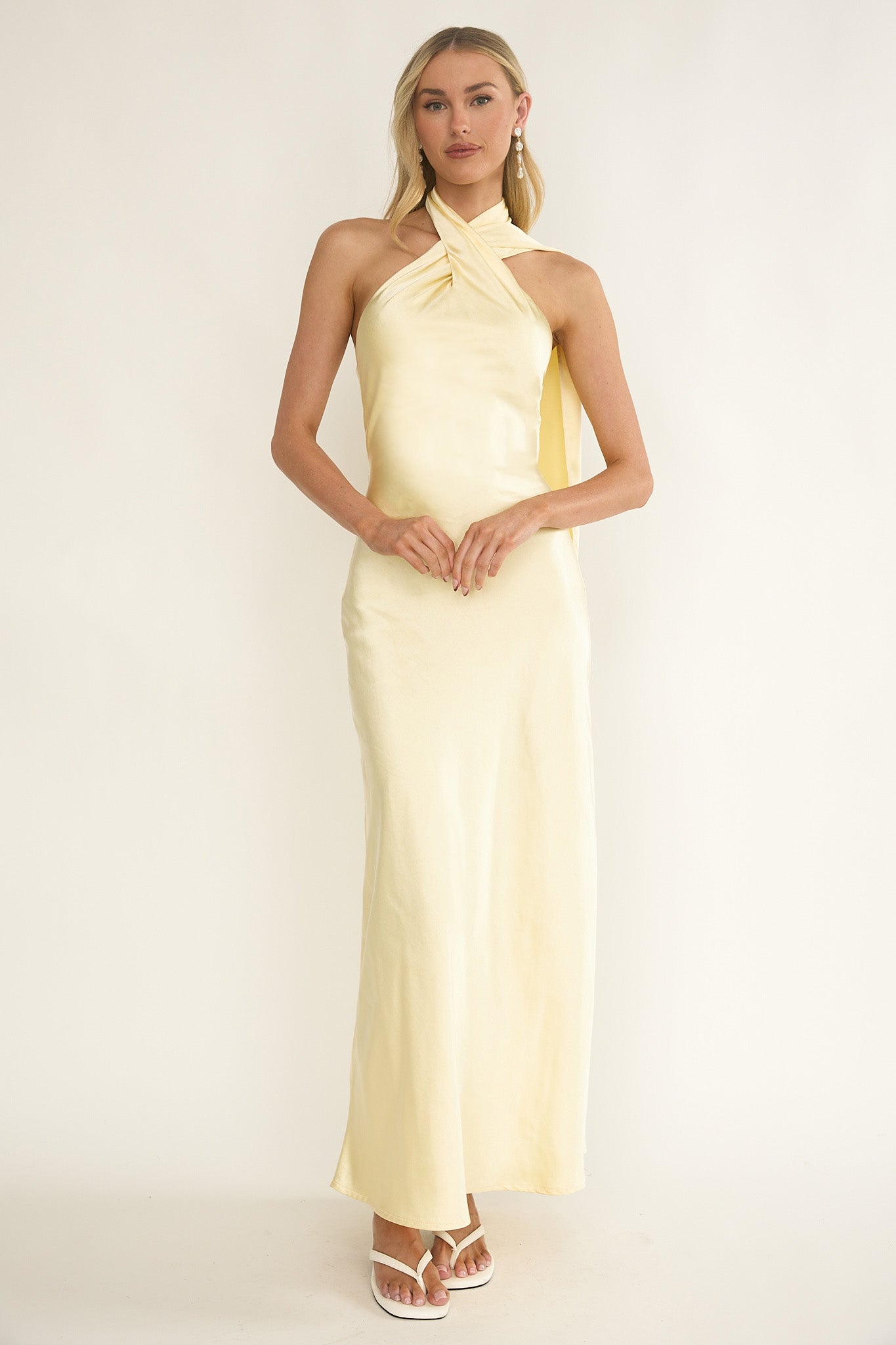 Steal the spotlight in our stunning Alvara maxi dress. It features a crossover halter neckline and is perfect for a a special event or birthday celebration. Team it with strappy heels and a purse for an unforgettable look.